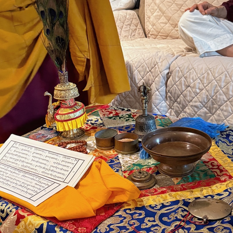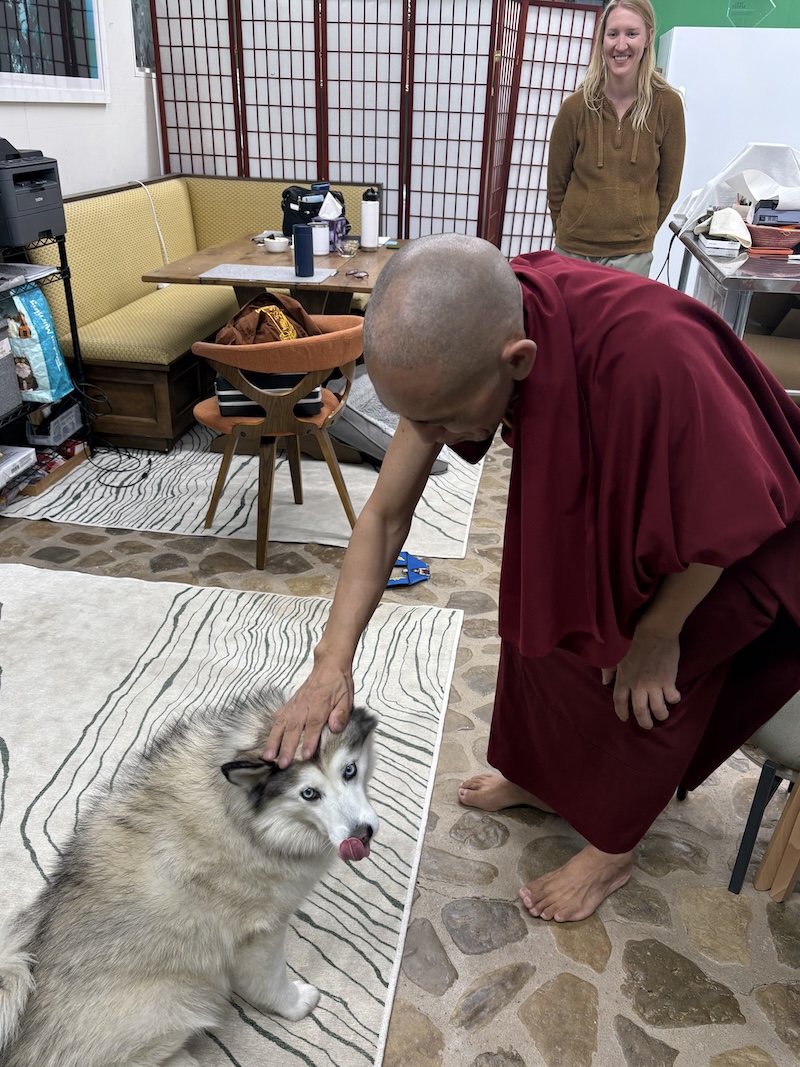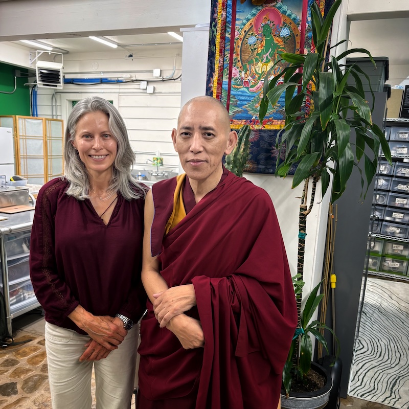 One of the most moving parts of the blessing comes when Geshe Tsultrim walks through the lab, sprinkling sacred nectar and rice. He observes our space with gentle attentiveness, encouraging us to approach our craft with respect for the plants, the environment, and each other. The ritual sends vibrational support to the ingredients, the products we create, and the clients who will use them, deepening our sense of purpose and connection.